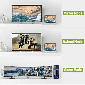 You can choose either “Mirror” or “Extended” or "Game" mode for your displays: