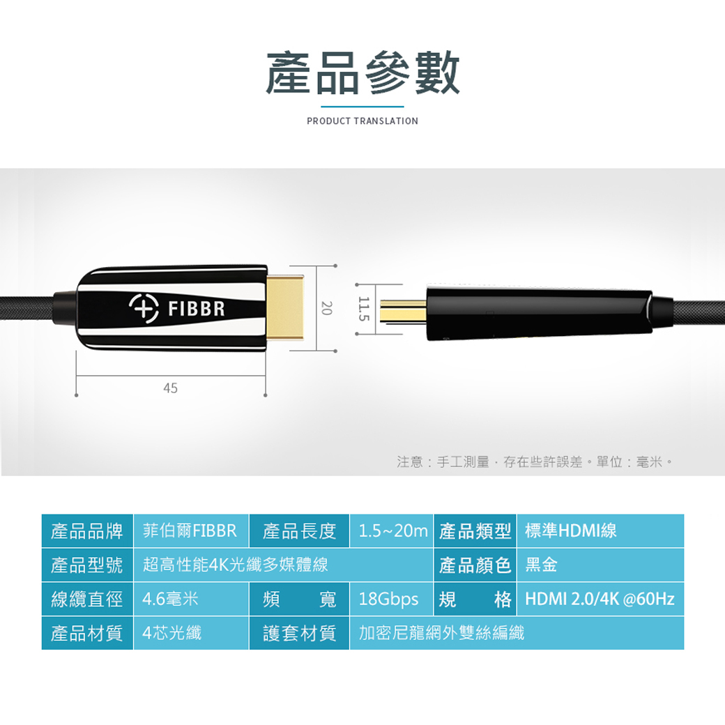 菲伯爾 FIBBR Pure HDMI 2.0光纖纜線