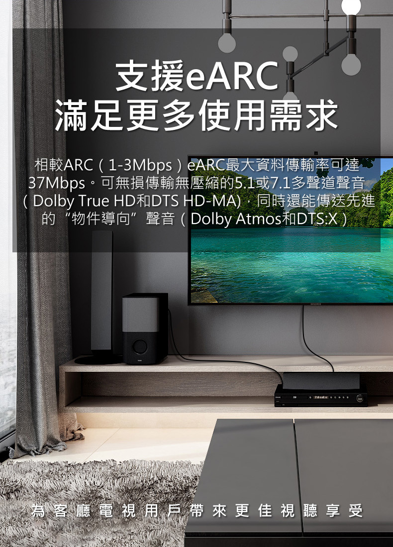 • 支援eARC,並支援最先進的音效格式