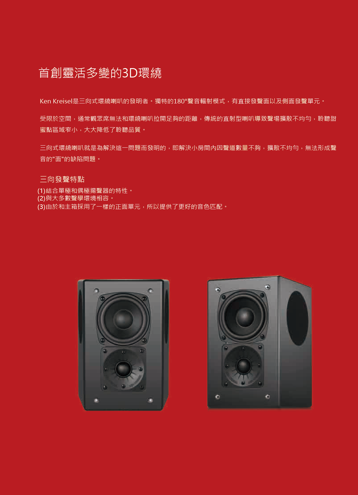 KK最新旗艦環繞揚聲器|一支專利導管式高音+兩支高音+兩支5.25吋中低音單體+兩支3吋全音域單體(每側)|可選擇三向發聲、兩側發聲、前方發聲|全系列可壁掛 (單支)
