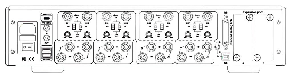 此擴大機的輸出訊號會回饋至電源供應的伺服功率級,根據需求調整功率級的輸出電壓。此設計可在低音量時提供豐富的細節解析,在高音量時釋放強勁的動態能量,使音樂更具層次感與衝擊力。